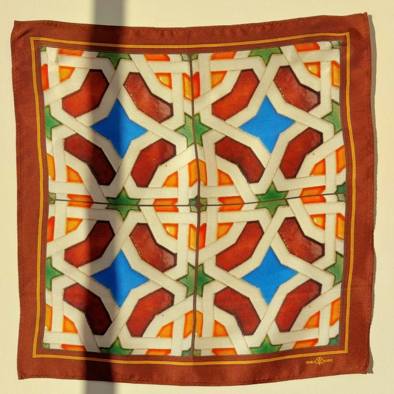 Esencias de Andalucía es una colección de pañuelos de seda natural inspirada en la luz, el color y la tradición del sur, reinterpretados con un lenguaje contemporáneo y el sello artesanal de Noble Nudo.
