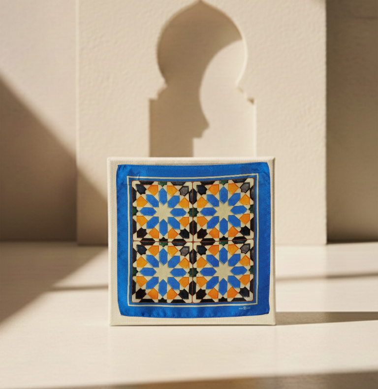 Confeccionado en seda natural 100%, este pañuelo ofrece una caída fluida y un tacto excepcional, realzando la precisión del diseño y la intensidad de los tonos. Diseñado en Andalucía y presentado en edición limitada, Cielo de Azulejo forma parte de la colección Esencias de Andalucía, una reinterpretación contemporánea de la tradición cerámica y la estética del sur.
