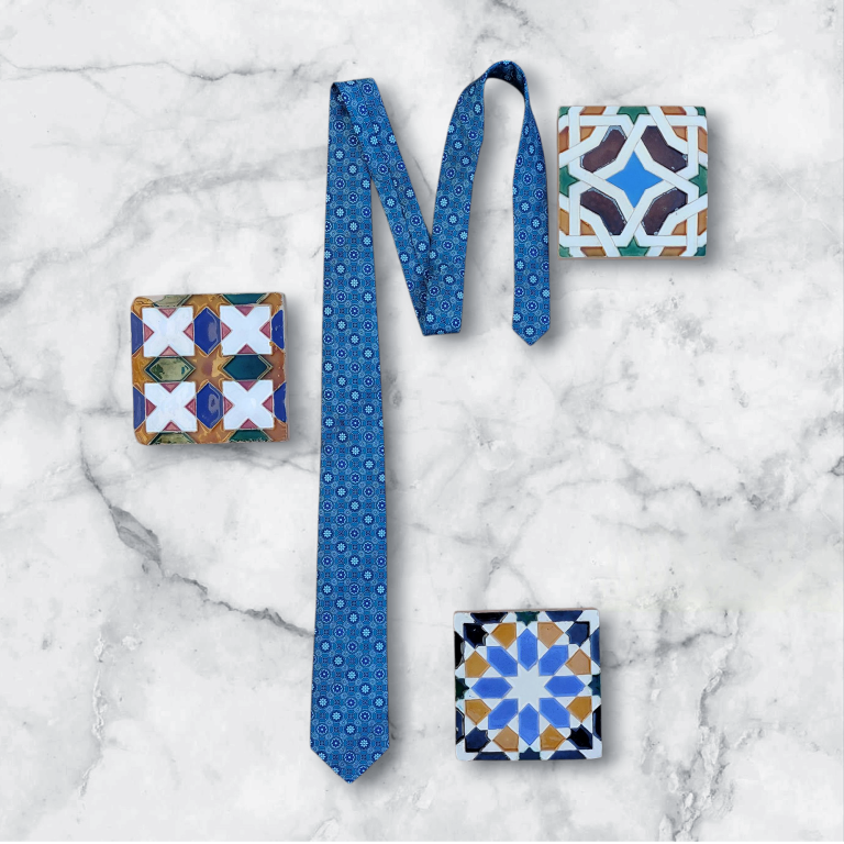 Inspirada en la cerámica andaluza, esta corbata une tradición y elegancia en un accesorio único. Cada motivo refleja la esencia del sur, pensado para quienes buscan estilo con carácter propio.