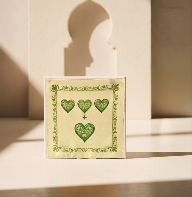 Cada pañuelo se presenta en una caja rígida Noble Nudo, donde descansa doblado con absoluta simetría, envuelto en un nido de papel de seda que protege la delicadeza de la morera. Coronando la presentación, la tarjeta de la colección reposa sobre el conjunto, invitando a descubrir la historia que inspira cada pieza. Es un diseño limpio y minimalista, donde la calidez del exterior y el lujo del interior anticipan la calidad excepcional de una seda diseñada para perdurar.