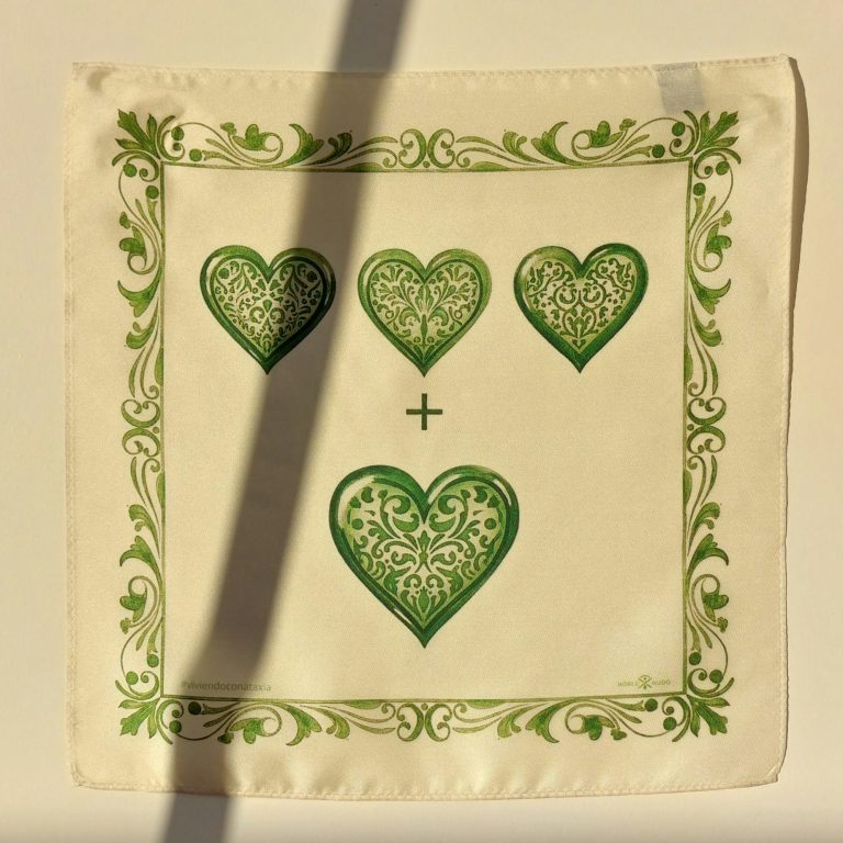 Confeccionado en seda de morera y producido en edición limitada, este pañuelo forma parte de una iniciativa solidaria en colaboración con @Viviendo_con_Ataxia.