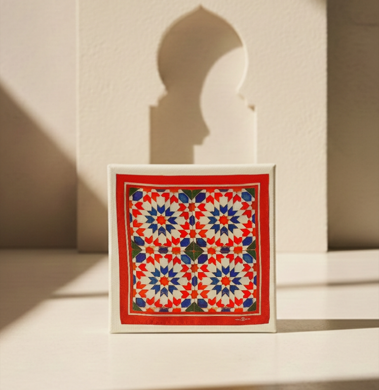 Fuego Andaluz es una celebración del color, la geometría y la energía que define a Andalucía. Su diseño se inspira en el azulejo tradicional, donde el rojo, el azul y el blanco dialogan con fuerza y equilibrio, evocando patios, fachadas y suelos que han sido testigos de siglos de historia.