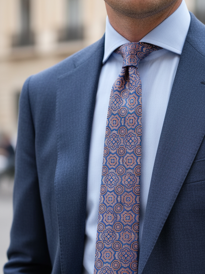 Inspirada en la riqueza cromática de los patios y plazas del sur, esta corbata despliega un patrón vibrante que recuerda los suelos de mosaico hidráulico tan característico de Andalucía. Un accesorio con alma artística, perfecto para destacar con personalidad.