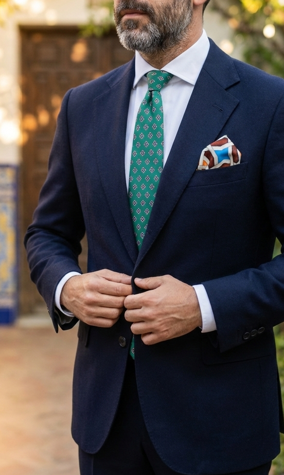 Corbata Jardín de Arrayanes: Un verde profundo y elegante que evoca la frescura de los patios palaciegos.