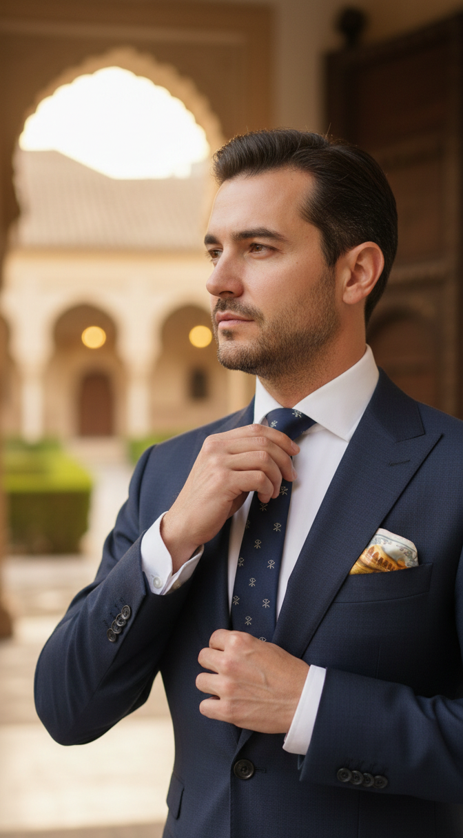 Corbata Sello Noble: Confeccionada en seda natural 100%, es la esencia de nuestra marca. Un diseño sobrio, elegante y con una caída impecable que denota autoridad.