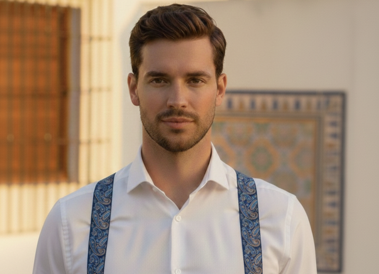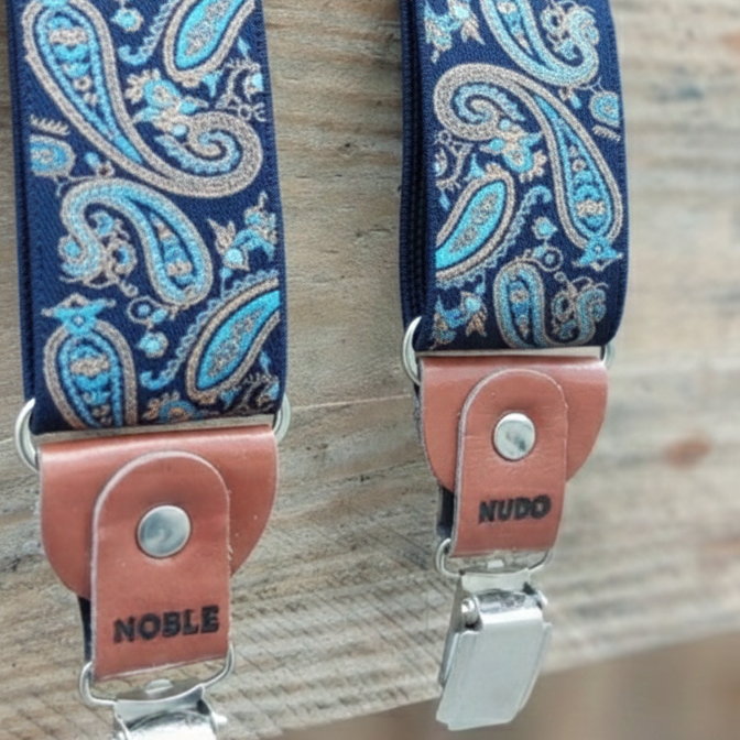Los tirantes Paisley Andaluz de Noble Nudo reinterpretan un motivo clásico con alma del sur. Su estampado paisley, de inspiración ornamental y raíces históricas, se combina con una cuidada paleta de colores que aporta profundidad, elegancia y carácter.