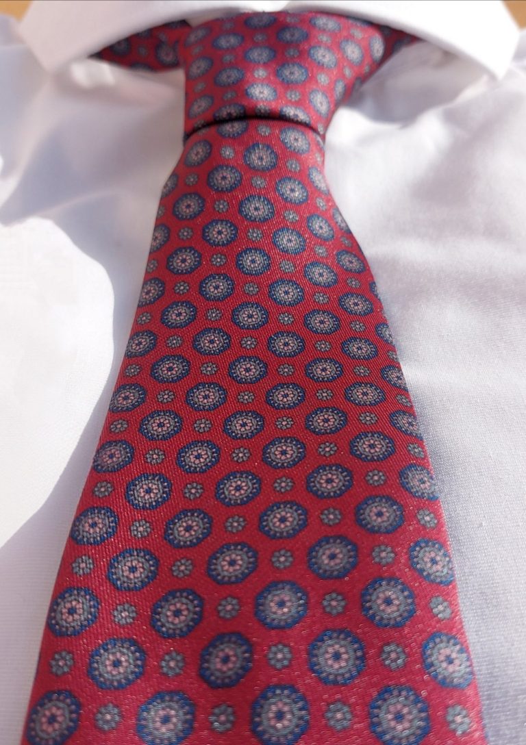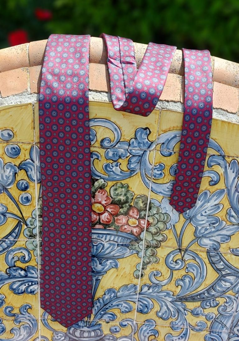 Con un estampado que recuerda a los rosetones de las iglesias trianeras y los motivos florales de la cerámica andaluza, esta corbata es ideal para quienes buscan un toque distintivo sin perder la sobriedad. Perfecta para dar protagonismo al detalle.