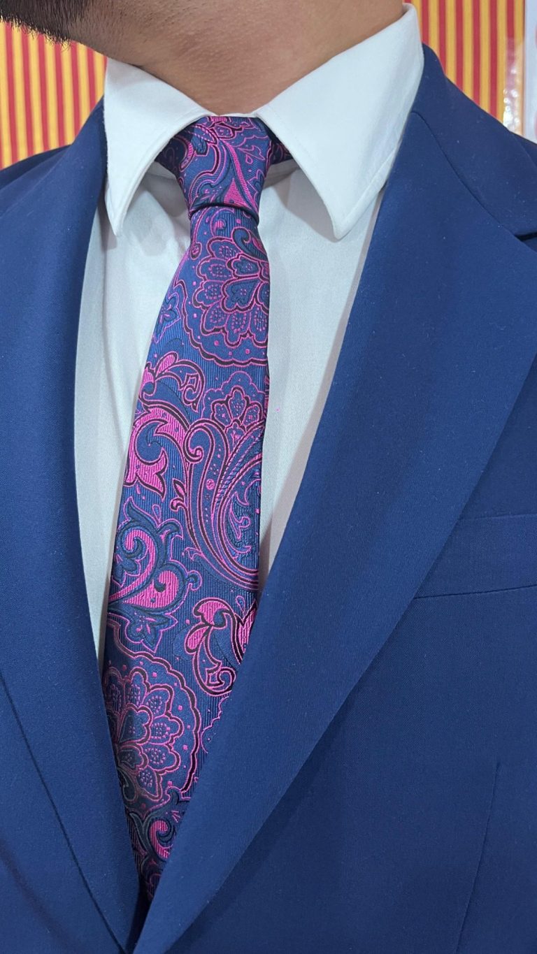 Inspirada en la tradición taurina y la estética vibrante de las plazas del sur, esta corbata mezcla fuerza, ritmo y color. Su diseño recuerda el dinamismo del ruedo, con formas que parecen moverse como una faena bien trazada. Un guiño elegante a la cultura popular andaluza.